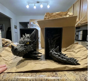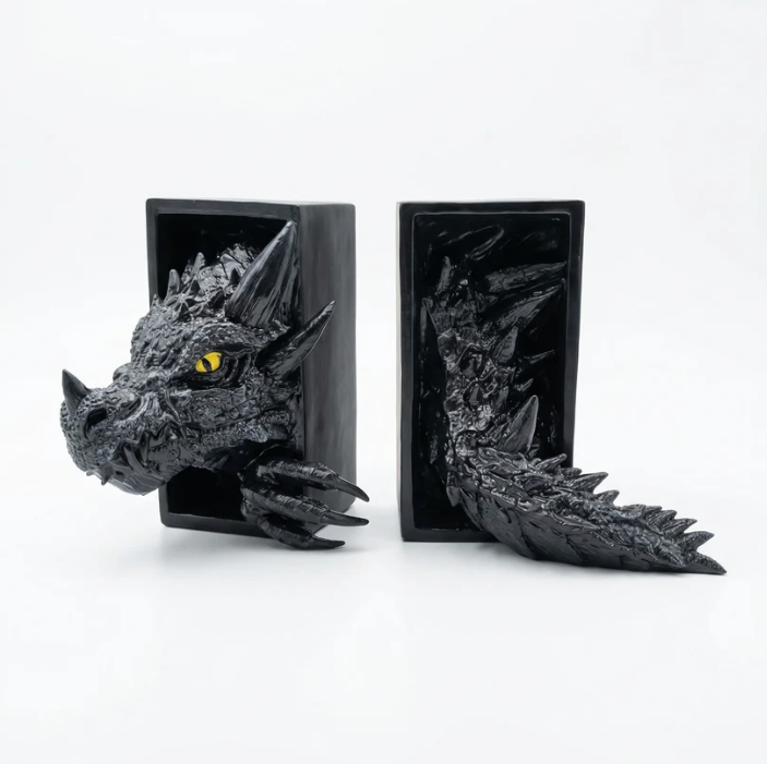 Watch as dragon book ends come to life! 🐉 Each piece is crafted with incredible detail, from the fierce dragon head to the matching tail that frames your books. 📚